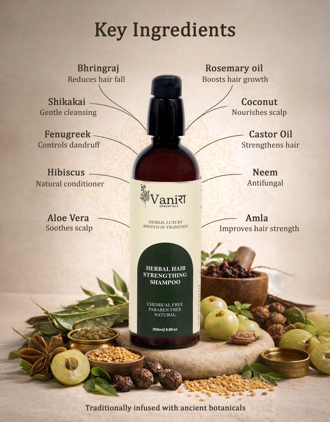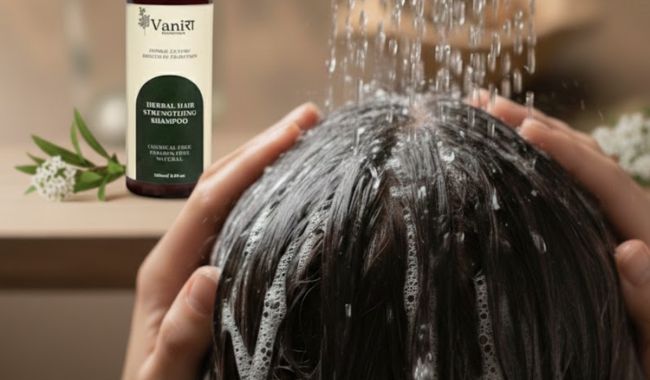 Vanira Essentials Herbal Hair Strengthening Shampoo is a mild, low-foam herbal formulation created to respect the scalp’s natural balance.
